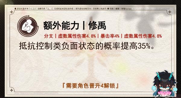 这个额外能力是一个简单粗暴的提升伤害的能力,使得饮月在面对虚数弱点敌人的时候伤害有更大的提升,强上加强。必点。
