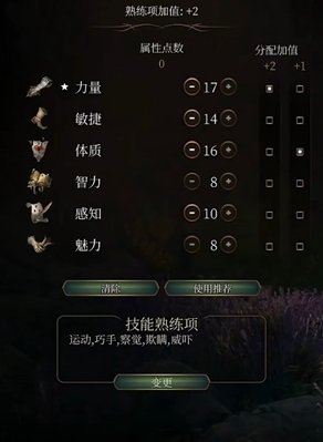 1、先将敏捷加到14点,其他分配到力量和体质。