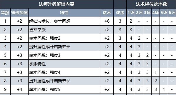 Lv1最大生命值:6+体质修正值;高级最大生命值:4+体质修正值,法师遇到没有学过的法术卷轴,可以永久将卷轴复制到他的法术书中,但需要支付卷轴以及每级法术50金币的费用。