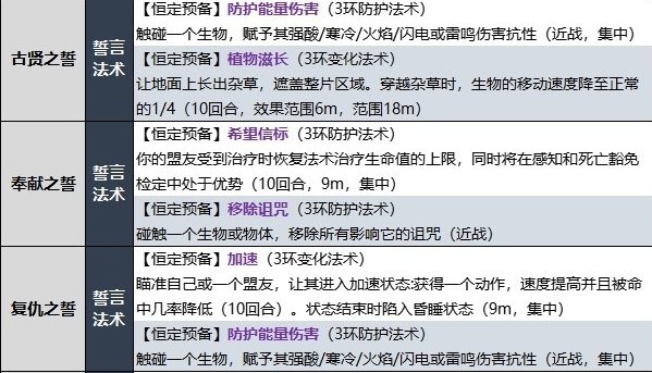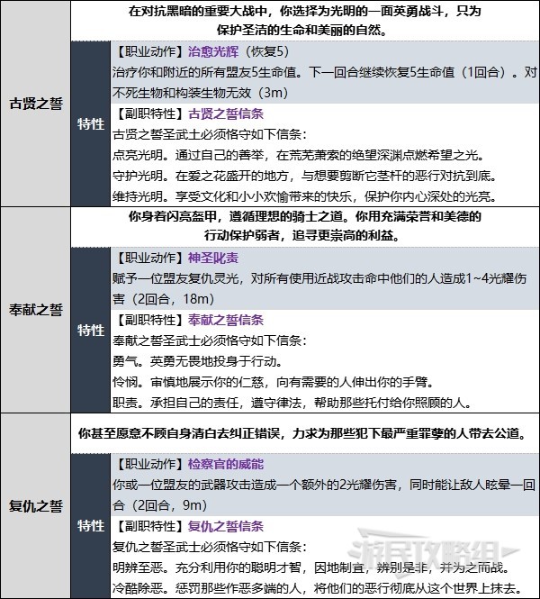 【副职特性】古贤之誓、奉献之誓、复仇之誓、弃誓