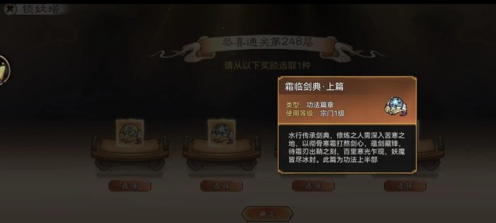 镇妖塔通关220层可以自己选择一本功法,可以选择霜临,所以问题不大。霜临的实用性完全可以考虑全员霜,当然水灵根是关键暂时没有水灵根首发,它也值得你先去拥有再去慢慢配阵容,打架的时候,5个人冰总会冻住对面。