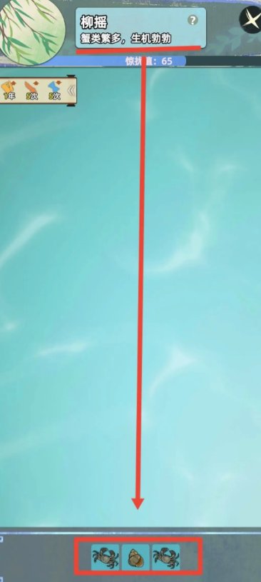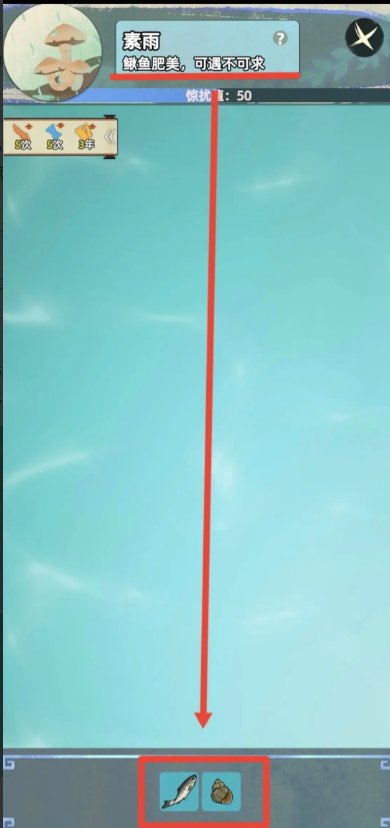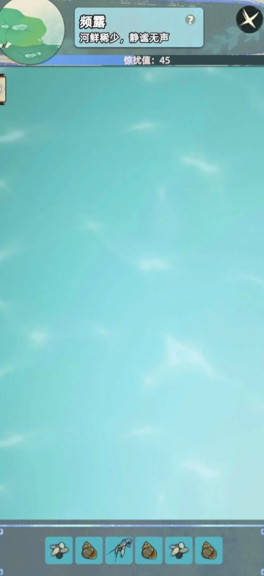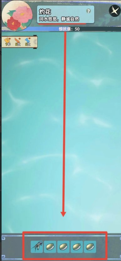 这局以鱼为主,可能泥鳅,可能桂鱼,这个说不准,但是比较难抓。容易刷太高的惊扰值。一般根据下方格子决定多少鱼,像我截图这里只有两格,就有一条鱼,如果是四五格,那么两条鱼甚至三条鱼还是有的。