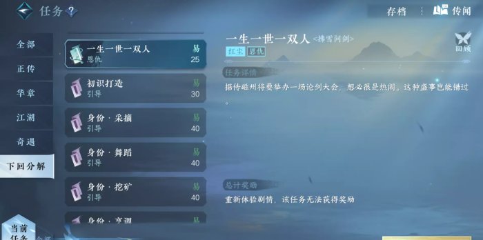 出本文的原因是很多玩家只想将本华章任务中关联的人间任务和奇遇快速做完,因此出此攻略帮助这类需求的玩家,所以如果是剧情党想把六个结局收集齐全的,建议去搜详细的达成各个结局的教学。