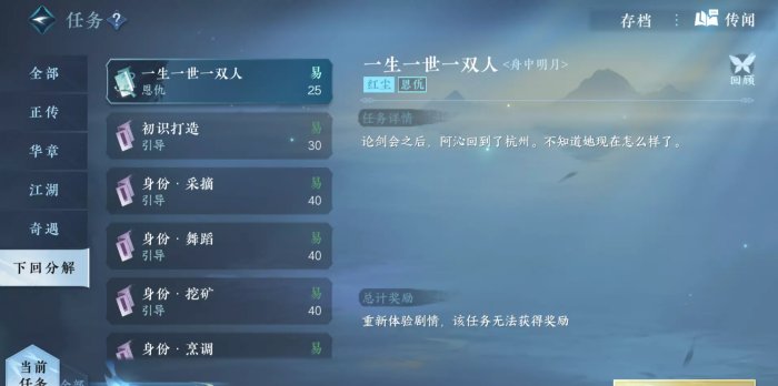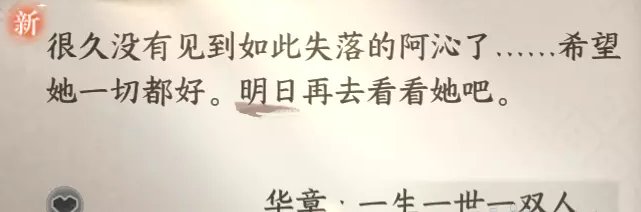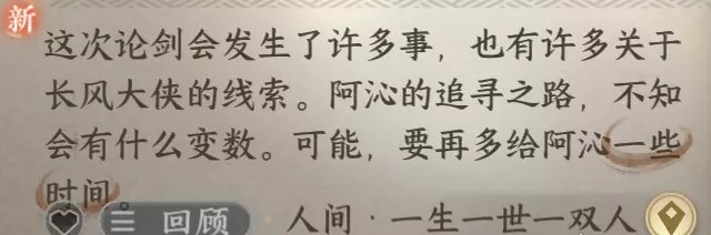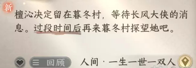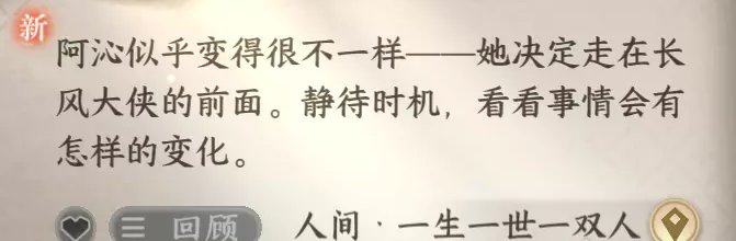 对话完后一双人的再叙(一)就完成了,然后会获得一生一世一双人·再叙(二)的传闻: