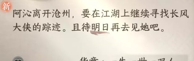 这时候到沧州753.937处进入任务场景完成即可,本任务一般称为一生一世一双人·暮冬,完成后传闻会变化,如图: