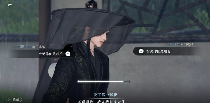 剧情推进到选择长风和折玉关系时,选择“听说你们是对手”会对应结局后的一双人·曲河星传闻:选择”听说你们是朋友“会对应结局后的一双人·冷血传闻