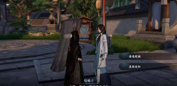5、最后回到杭州1276.882处与“陆娘子”对话,选择“善意欺骗”对应结局“善意的谎言”,选择“直接告知”对应结局“残酷的真相”