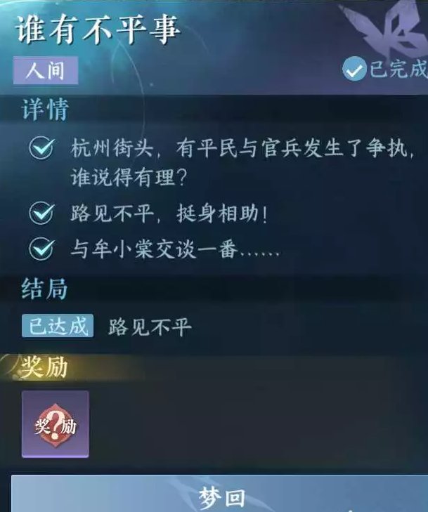 以上就是《逆水寒手游》人间任务谁有不平事任务攻略的全部内容 ,更多逆水寒手游相关攻略点击逆水寒手游专区查看!