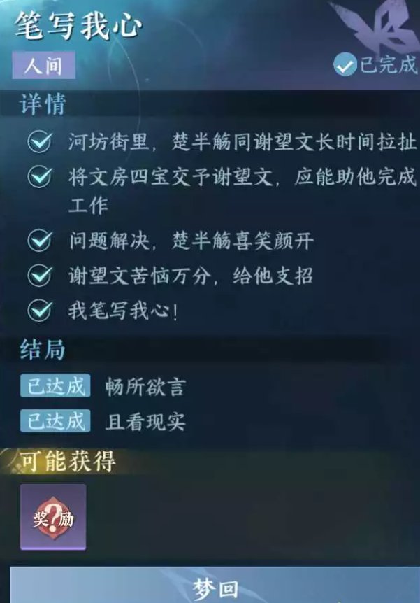 《逆水寒手游》人间任务笔写我心任务攻略