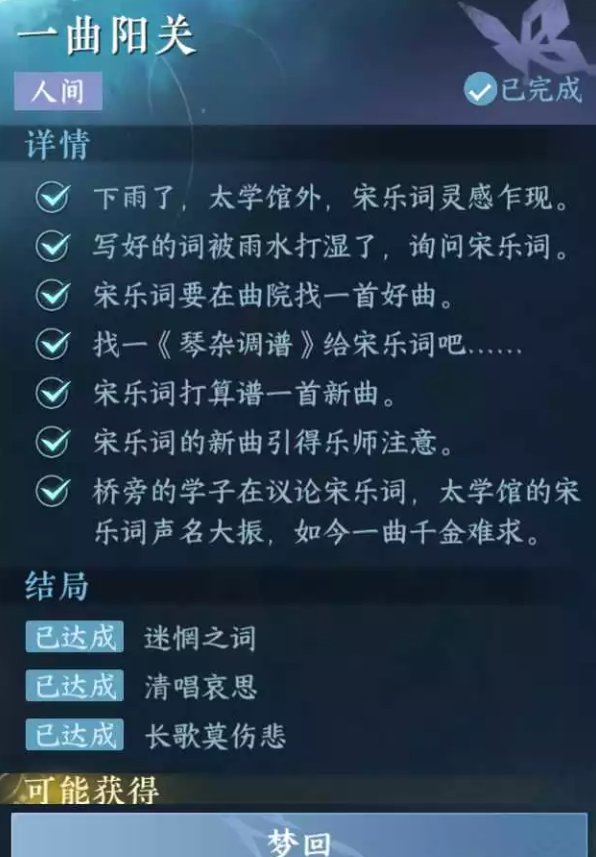 注:本人间任务有3个结局,可在本区域的人间任务列表进行梦回