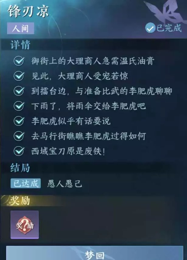 《逆水寒手游》人间任务锋刃凉任务攻略