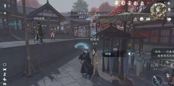 3、检查一下背包里有没有“伞”,没有的话到汴京1074.1112处买伞。