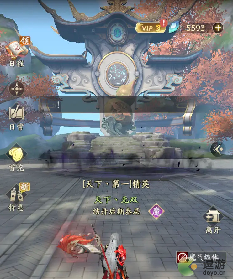 2、然后找到圆广场,看到这广场的黑雾,得走近点才会出现魔将,如果到中间没有出现,说明魔将不在此处。