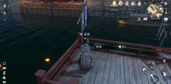 1、晚上!到汴京1055.990处与NPC“岳崇”对话获取任务