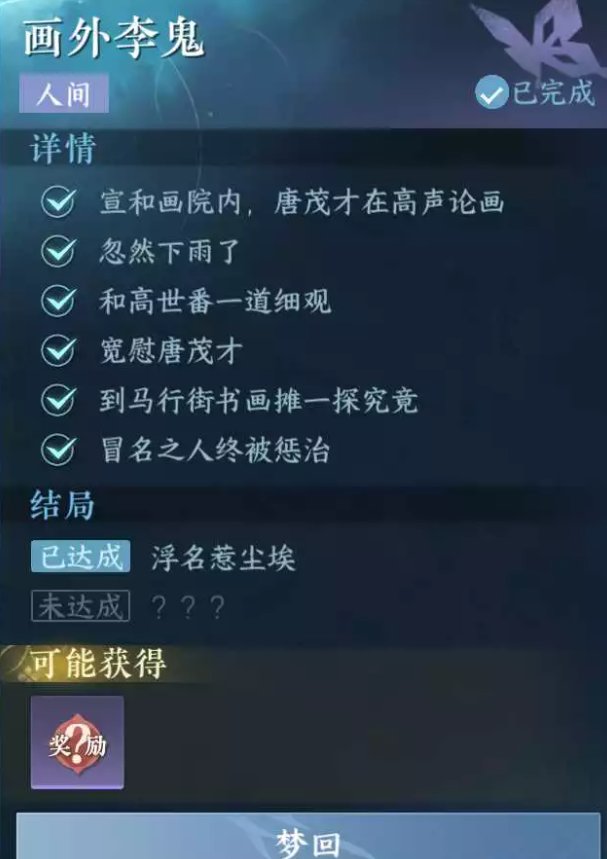 注:本人间任务有2个结局,可在本区域的人间任务列表进行梦回