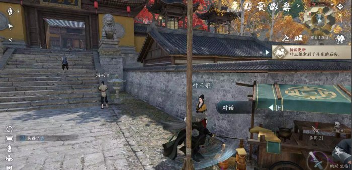 2、到汴京816.1266处向NPC“叶三娘”提交“金刚石”并进行对话即可完成任务