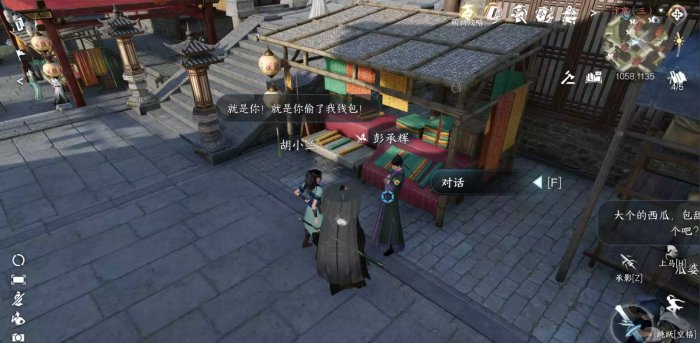 1、到汴京1058.1135处与NPC“胡小兰”和“彭承辉对话