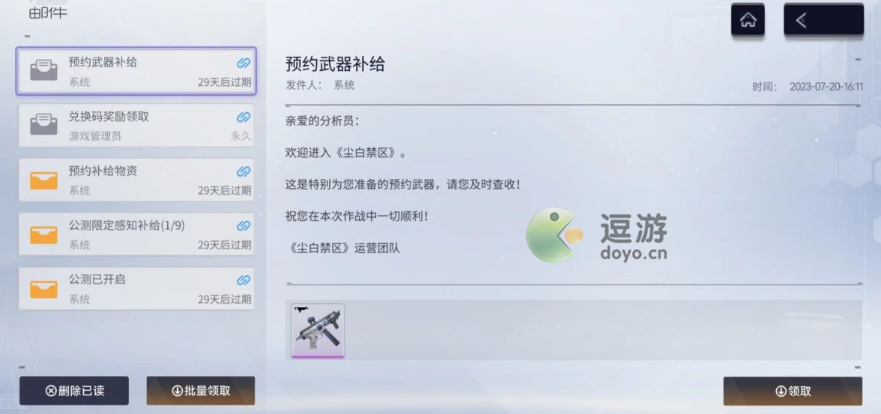 4、最后,回到游戏主界面,找到“邮件”,进入“邮件”列表领取就可以了。