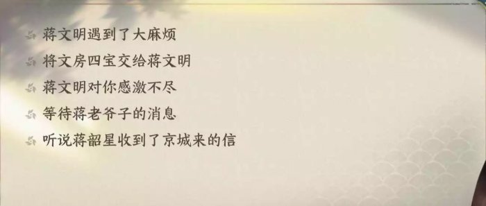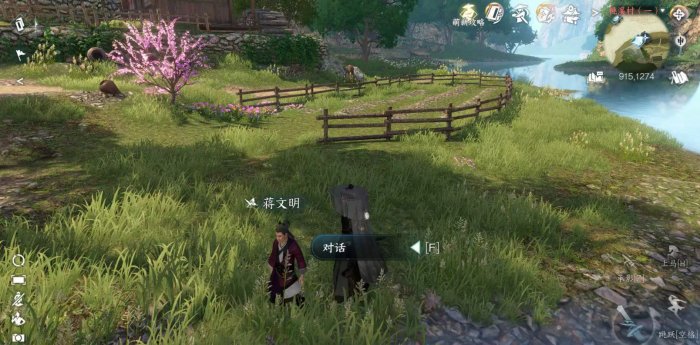 1、到桃溪村915.1274处与NPC“蒋文明”对话,可以选择给他物品或者给他钱,前者需要提交一个“文房墨宝”,没有该道具可以到杂货铺商人处购买