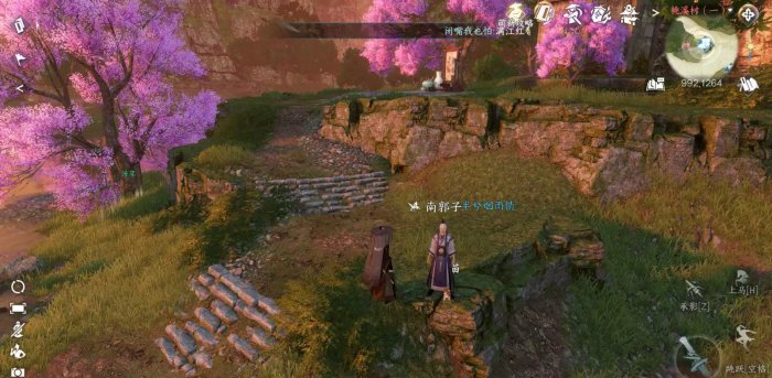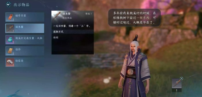 到桃溪村992.1264处与NPC“南郭子”对话并提交“旧木簪”