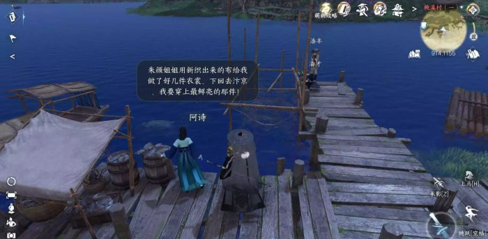1、到桃溪村914.1155处与NPC“阿诗”对话