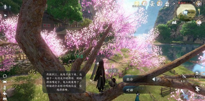 ②到桃溪村902.1266树上向NPC“阿胜”提交“特制大肉包”并对话