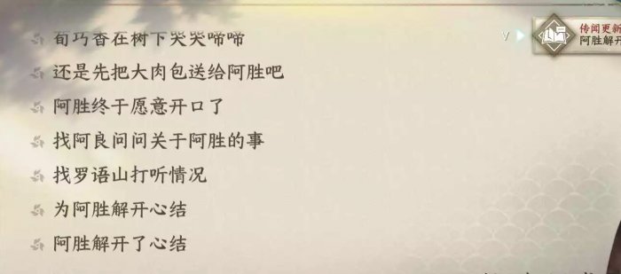 ⑥回到NPC“阿胜”处与之对话,选择新解锁的选项,开导他后即可完成任务