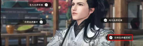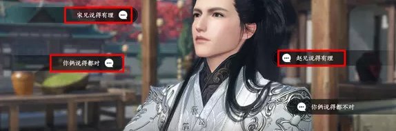 心境任务【众生之相】中宋赵争论中选择【你俩说的都对】或【赵兄说得有理】或【宋兄说得有理】。