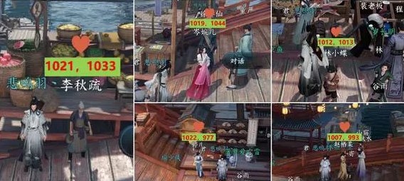 心境任务【众生之相】中,在虹桥上与路人对话时,在以下几位愿意前往衙门听审的NPC。至少选择两位:李秋疏(1021,1033),岑婉儿(1019,1044),婷儿(1022,977),赵栖柔(1007,993)林小蝶(1012,1013)。