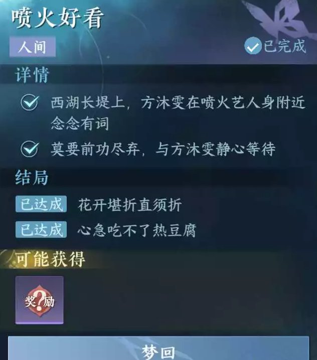 注:如果没有人间任务标志就到旁边“秦炎”处站一会等他喷火就有了