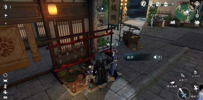 1、到杭州795.1062处与NPC“胡清”对话并提交“文房四宝”