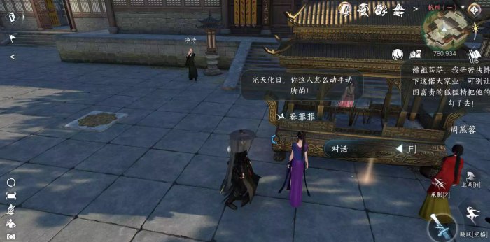 1、到杭州780.934处与NPC“秦菲菲”对话