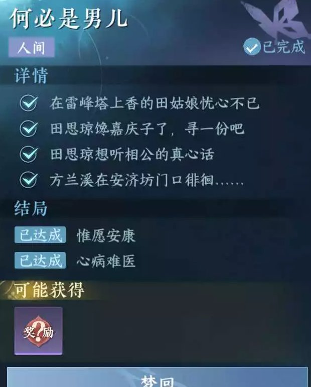 《逆水寒手游》人间任务何必是男儿攻略
