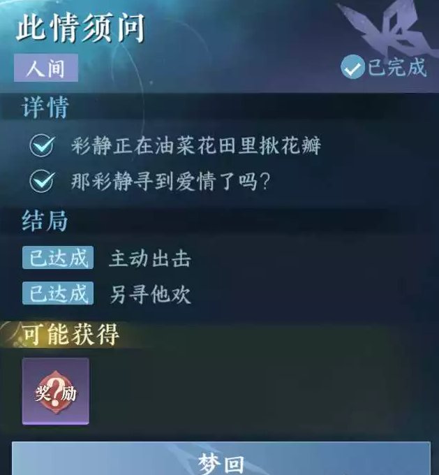 以上就是《逆水寒手游》人间任务此情须问任务攻略的全部内容 ,更多逆水寒手游相关攻略点击逆水寒手游专区查看!