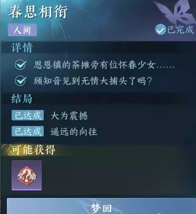 以上就是《逆水寒手游》人间任务春思相衍任务攻略的全部内容 ,更多逆水寒手游相关攻略点击逆水寒手游专区查看!