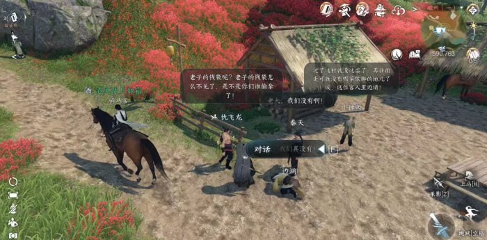 5、结局“恶人自有恶报”: 先到磁州598.773处与“傅问”对话,然后和“仇飞龙”对话,选择“何时被偷”、“有人看到你的钱袋被偷”即可