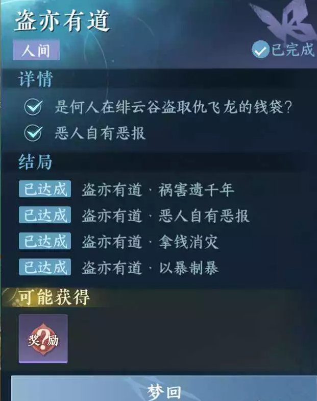 《逆水寒手游》人间任务盗亦有道任务攻略