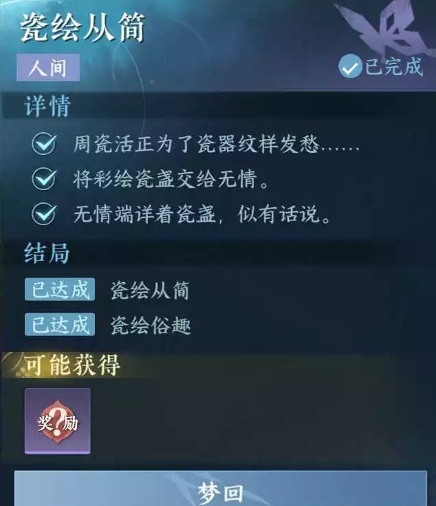 《逆水寒手游》人间任务瓷绘从简任务攻略