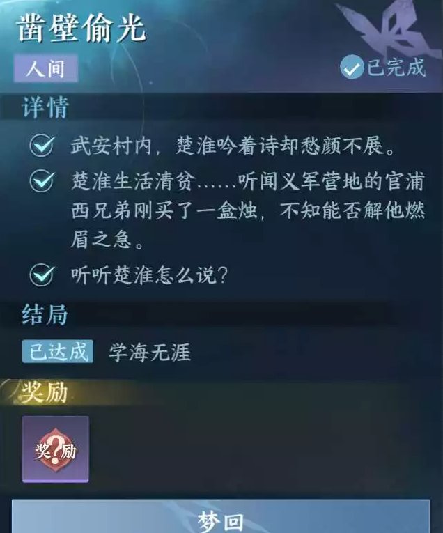 《逆水寒手游》人间任务凿壁偷光任务攻略