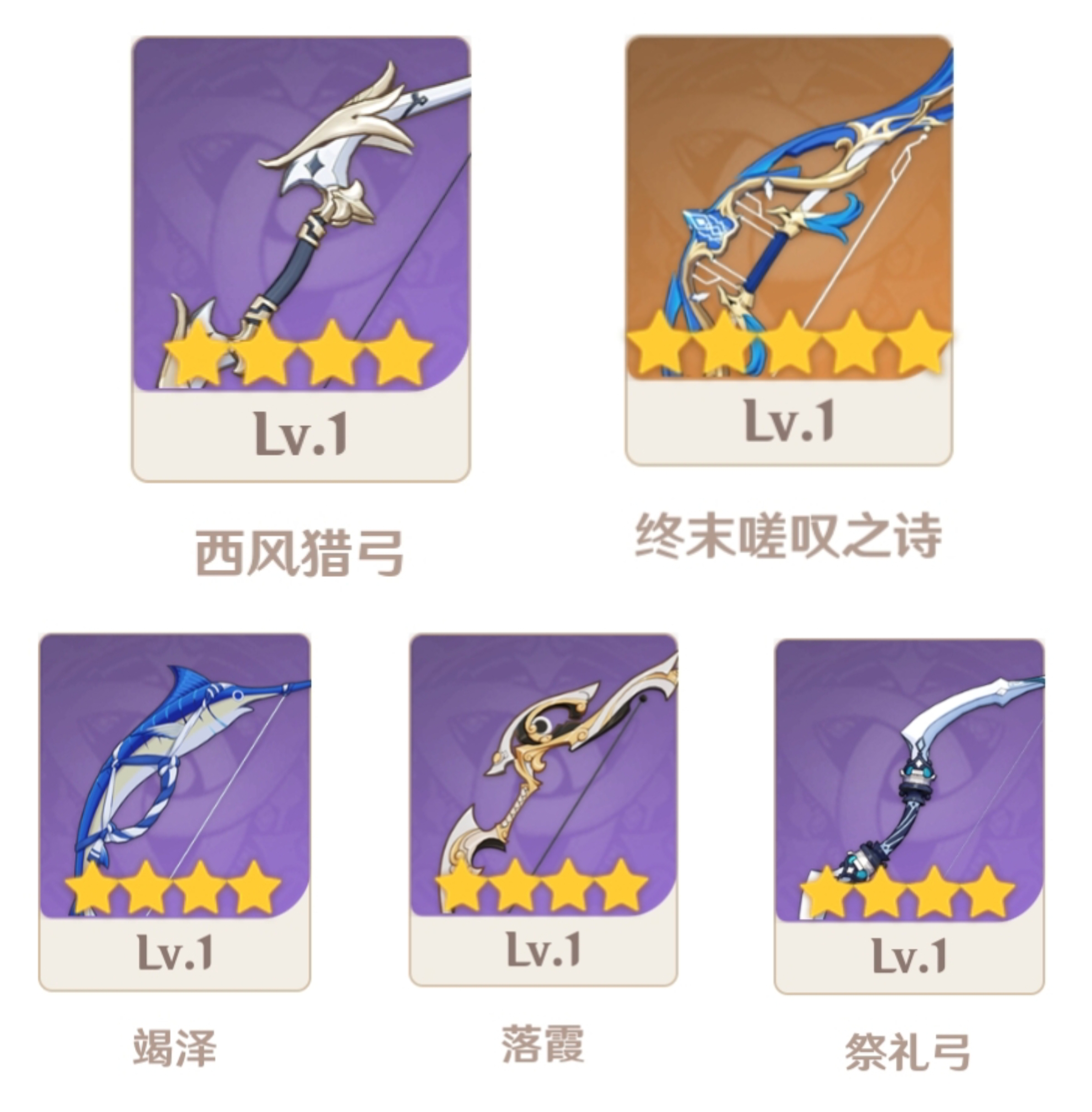 3.竭泽、落霞、祭礼弓都是加充能的,没有西风弓和终末的话可以带这三把武器。