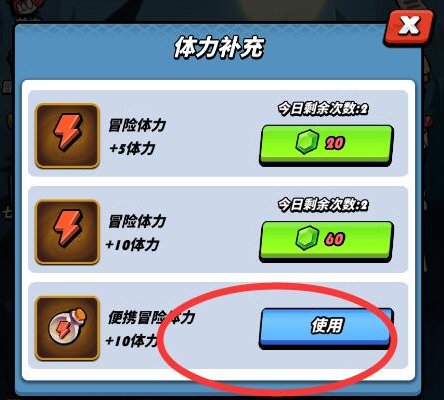 3、然后点击体力后面的“+”号,我们点击使用,这样就可以消耗已经获得的道具来兑换体力了