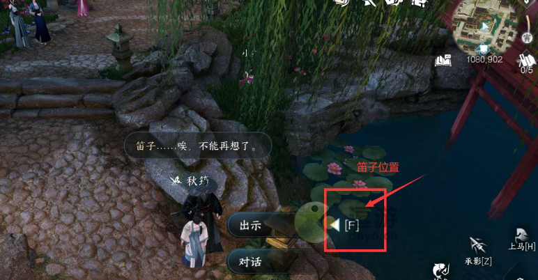2、杭州1080.902处旁边水池拾取“笛子”提交给NPC“秋筠”并对话