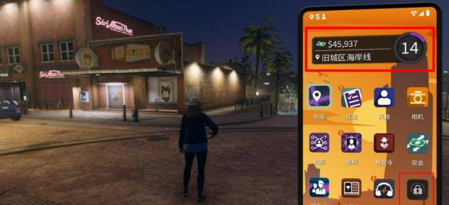 按下TAB键可以打开手机界面,手机界面最上方显示玩家当前拥有的金钱、所在位置以及等级,下方可以找到各种功能APP。