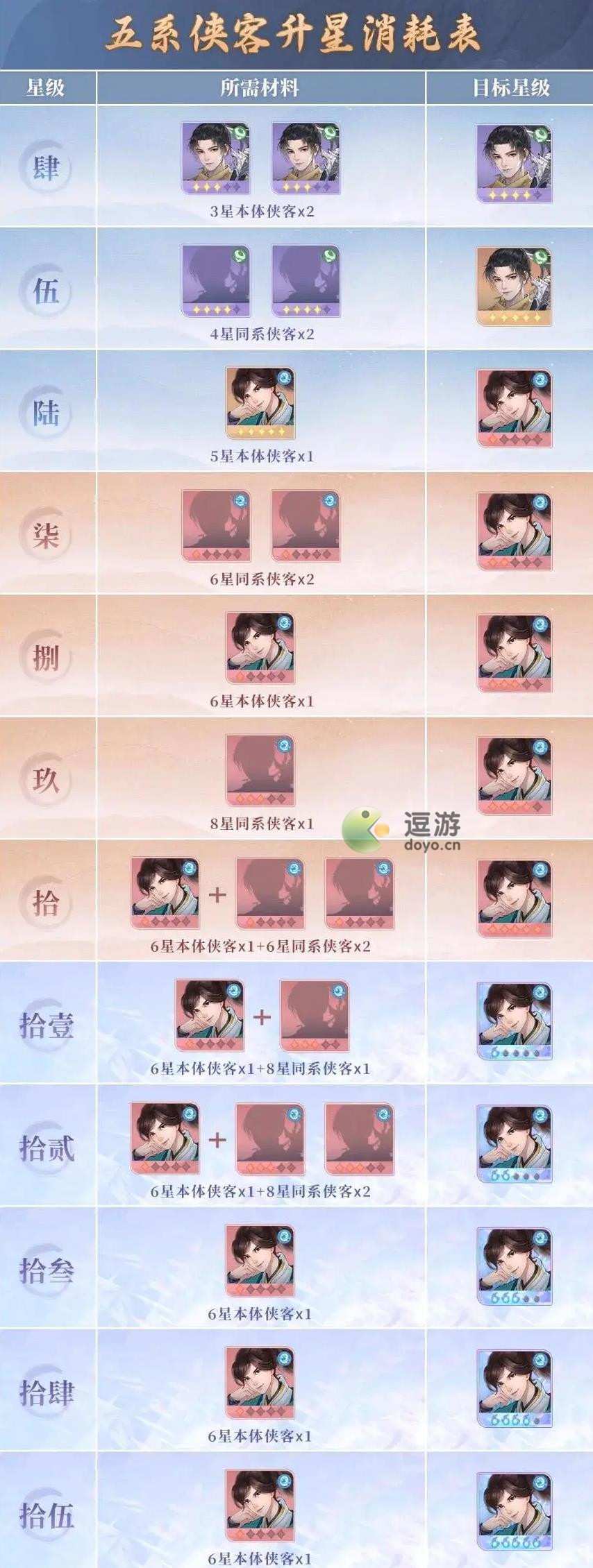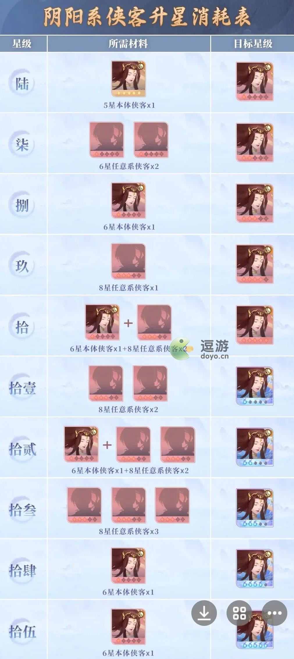 新仙剑奇侠传之挥剑问情角色升星材料是什么?游戏中的侠客分为阴阳和其他五系,升星消耗也不一样。下面为大家带来新仙剑奇侠传之挥剑问情角色升星攻略,一起来看看吧。