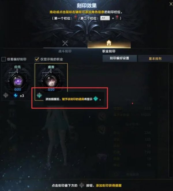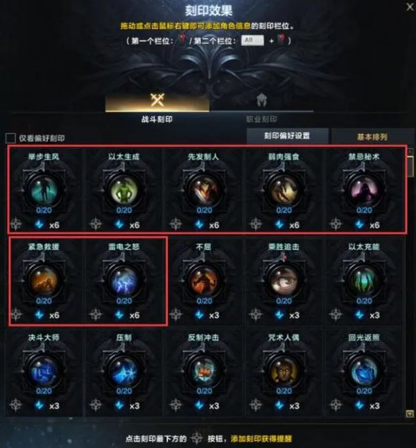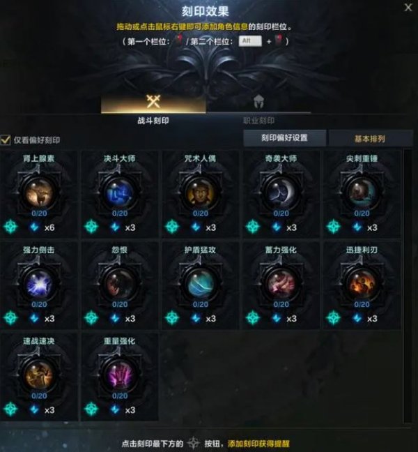 上面的刻印都是战斗刻印是各职业通用的,除此之外还有每个职业专属的职业刻印,可以把每个职业分成两个流派,加点不同,对应的玩法也不同,具体各个职业的加点因为内容太多这期先按下不表,大家只要知道刻印分为两个种类就行。