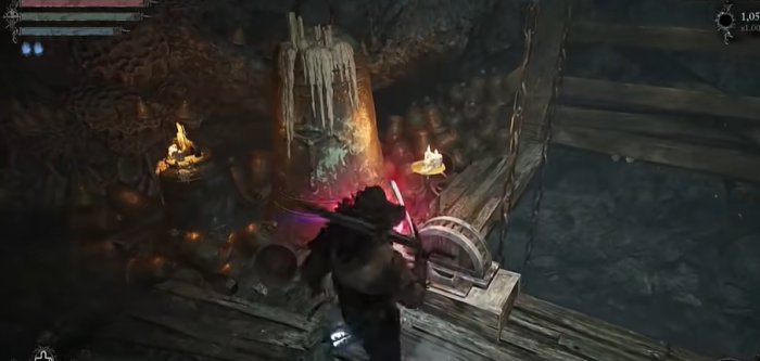 回到天空之桥大厅,从这里上去就能找铁匠强化武器了。