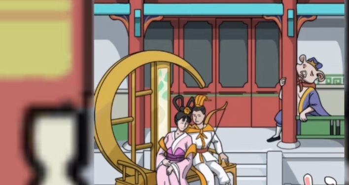 4、双指放大月宫,可以找到玉兔、嫦娥、后羿,右滑屏风找到猪八戒