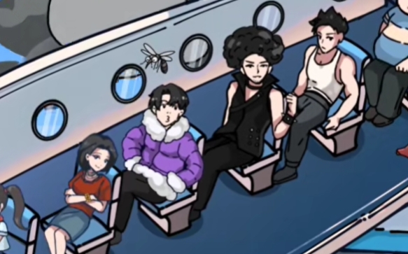 3、将朋克爆炸头的男乘客头上的假发扔出飞机外