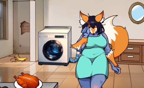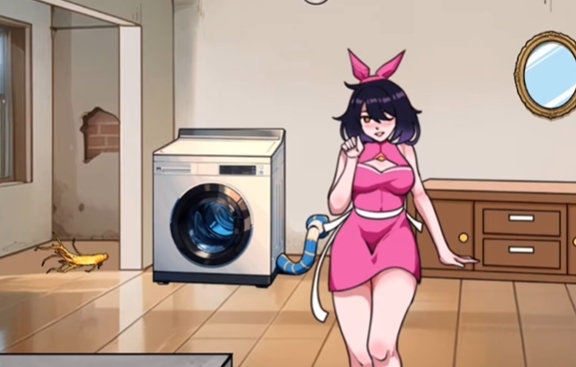 4、拖动人到洗衣机,尾巴被甩出来。