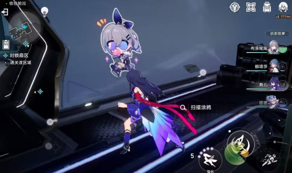 下来沿着中间区域,继续往右走,在两个小怪后面有一个等级涂鸦,可以降低关底boss的难度,扫描完以后直接打boss就能通关了。